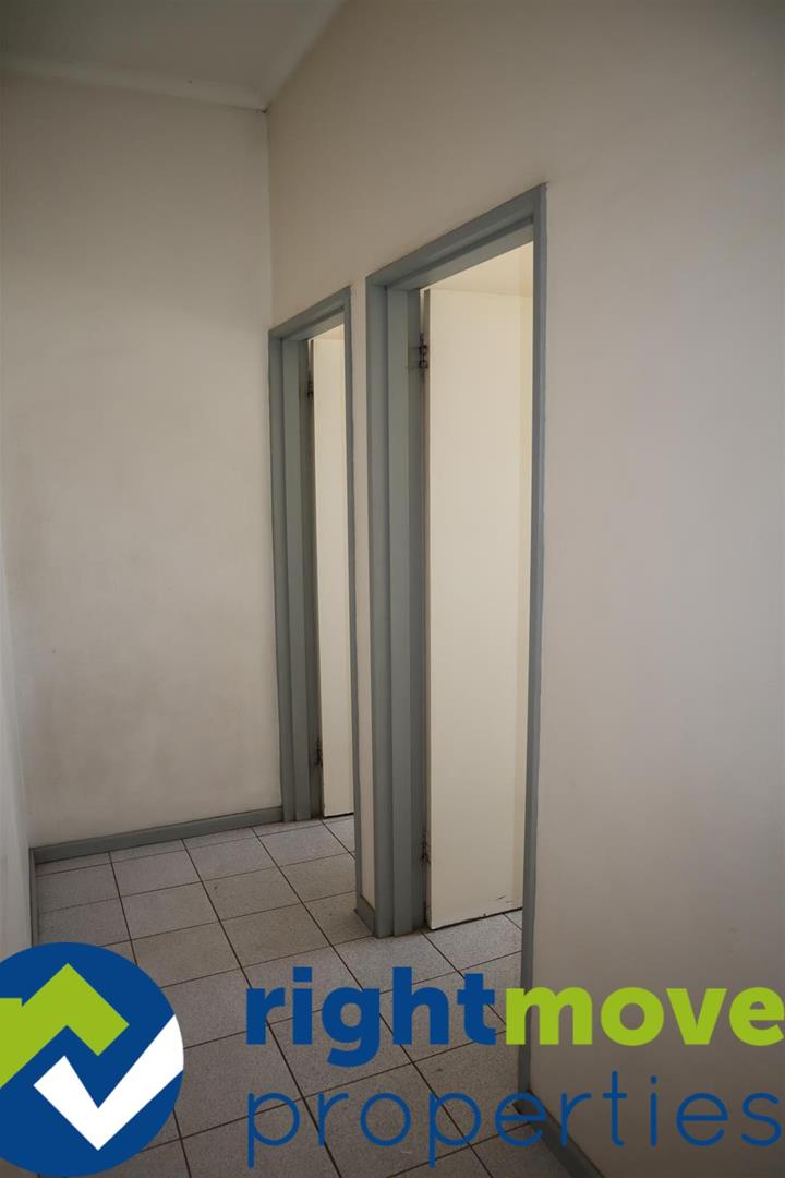 Unit consists of a reception-waiting area, a boardroom, two offices, a kitchenette, and two separate toilets, with a warehouse attached.
